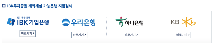 대면으로 IBK투자증권에 찾아가서 개설하는 방법이 있습니다. 이외에는 제휴은행을 통한 방법이 있는데요, 기업은행, 우리은행, 하나은행, KB국민은행에 방문하여 IBK투자증권 계좌를 개설할 수 있습니다.