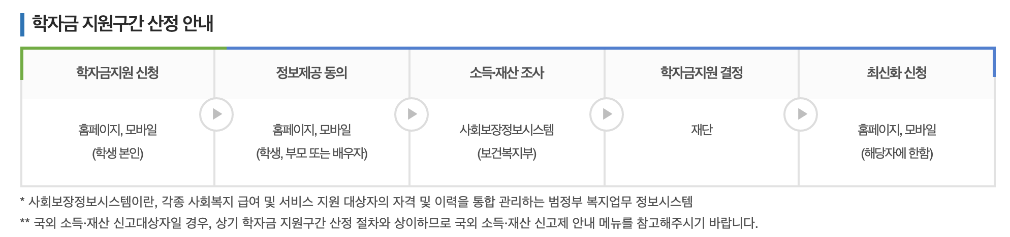 학자금지원 구간은 학생, 가구원(부모, 배우자) 소득, 재산, 부채 등을 계산하여 산정된 소득 인정액에 따라서 결정이 됩니다. 지원구간 산정 결과는 2022년 1월에 신청시 입력한 휴대폰과 메일 등으로 안내 받을 수 있습니다.
