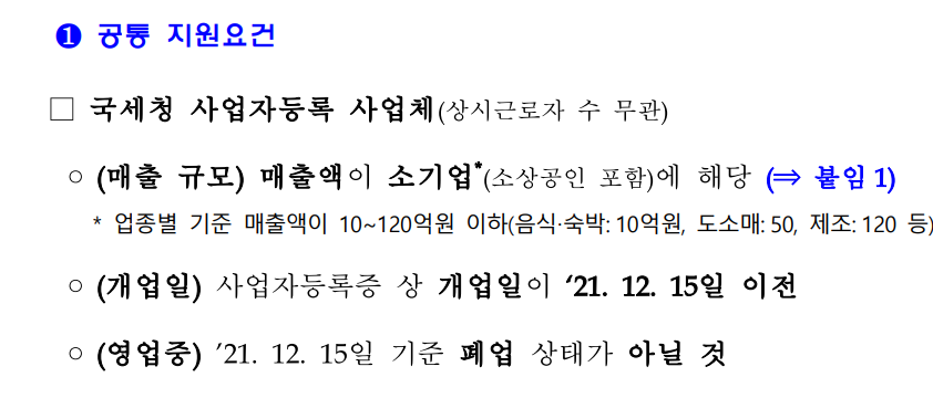 - 21년 12월 15일 이전에 개업한 소상공인, 소기업