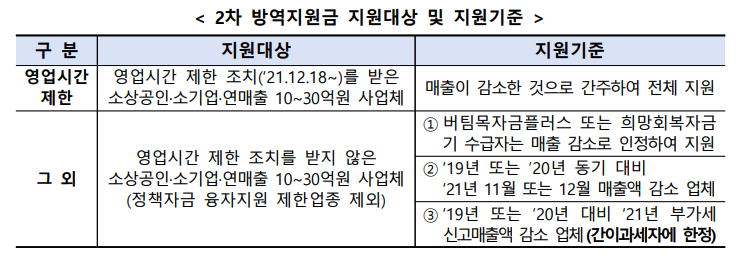 소상공인 2차 방역지원금 대상