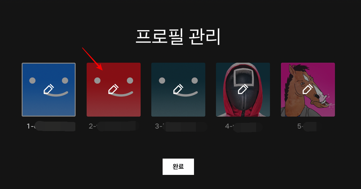 넷플릭스에 접속시 마찬가지로 5개의 프로필이 확인되며 저는 2번째 계정을 이용하면 됩니다. 간단하죠?