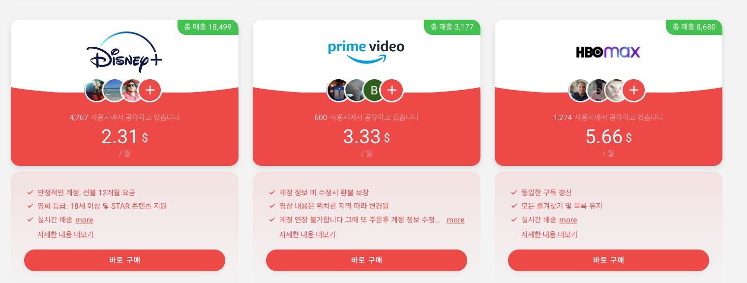 이럴 때 많이들 사용하는 방법이 '함께 볼 지인을 구해서 결제 후 계정을 공유하고 돈은 입금받는다'. 아마 이형태가 가장 많다고 생각됩니다. 하지만 이런 방법을 사용하다 보면 갑자기 한명이 그만보고 싶어하거나, 하는 경우 또 다른 지인을 구하거나 1인당 금액이 올라가게 됩니다.