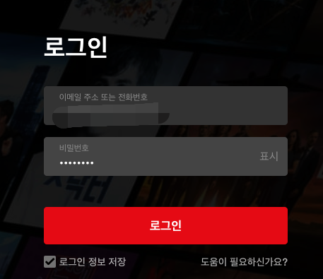 겜스고에 표시된 계정을 입력하여서 넷플릭스에 로그인합니다.
