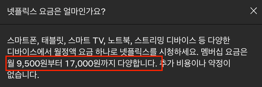 현재 넷플릭스는 17,000원에 프리미엄서비스를 이용할 수 있습니다. 하지만 겜스고를 이용한다면 1/4 가격에 해결됩니다.