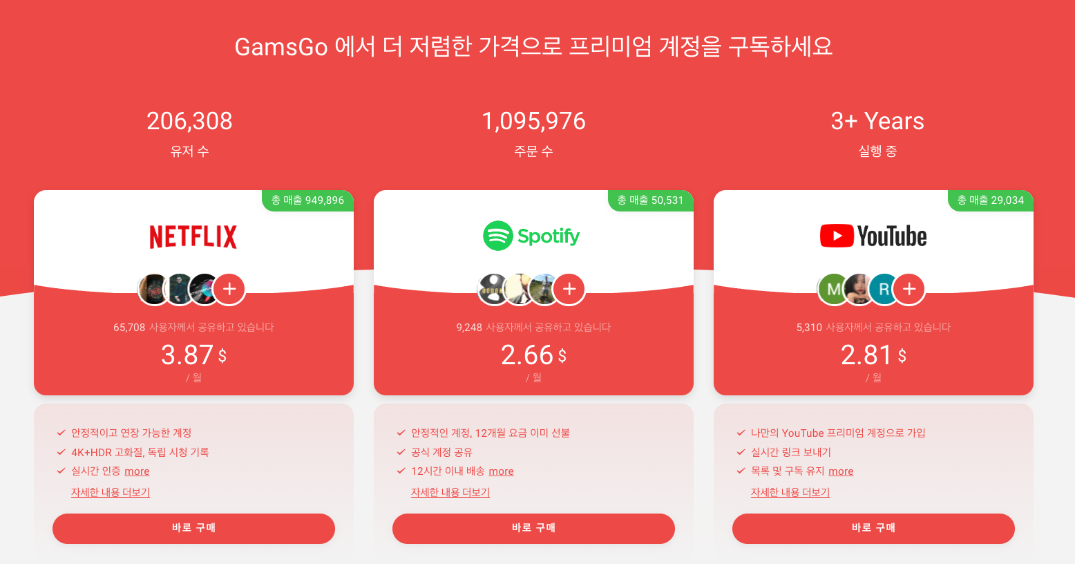 넷플릭스의 경우 요금 인상뉴스도 나오는 만큼 이럴 때 이용해 볼 수 있는 방법이 스트리밍 쉐어 서비스 겜스고(GamsGo)입니다.