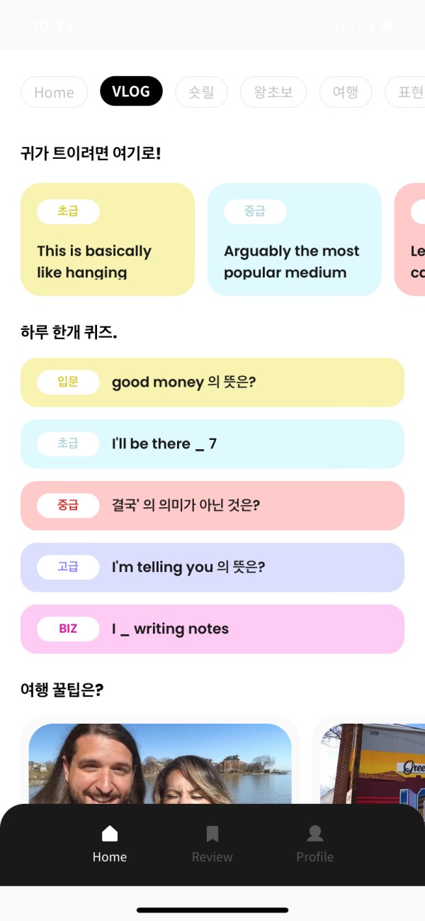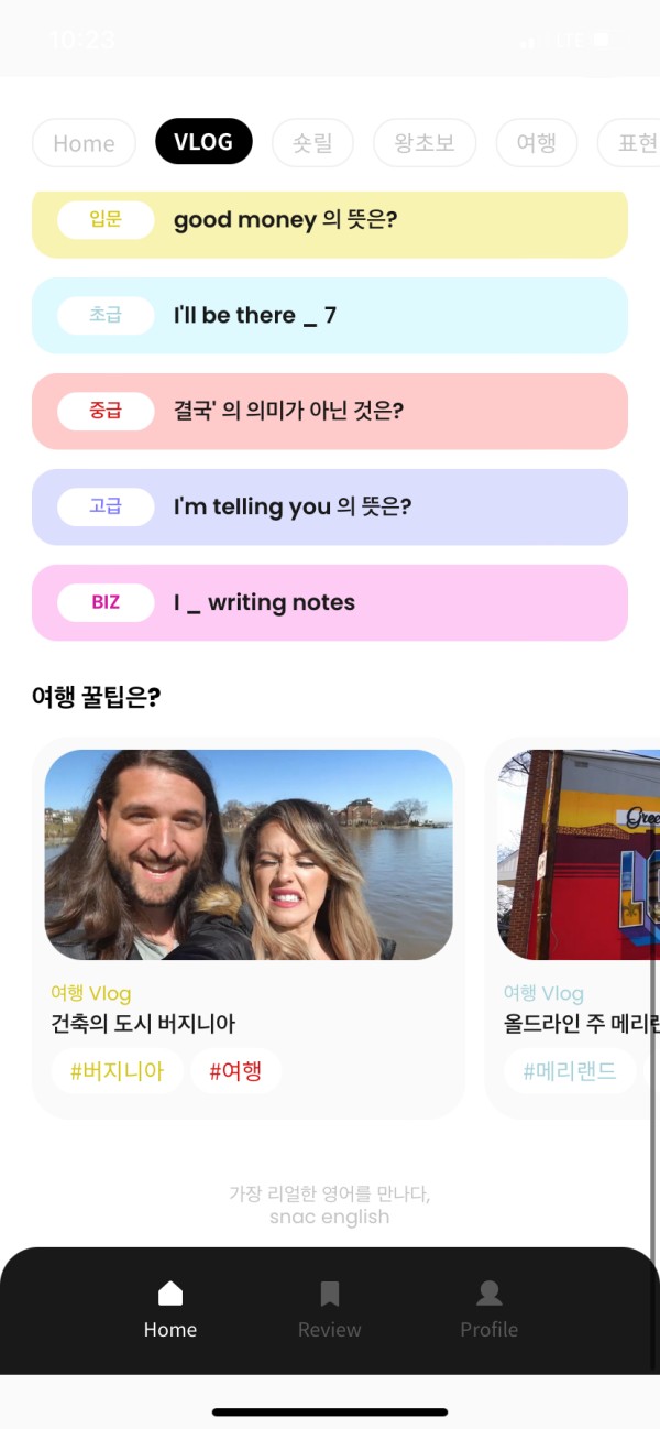 어플 써보고 전체적으로 느낀점 리얼영어 익히기에 좋은 어플인거같아요. 브이로그들은 대본도 아니고 진짜 외국인들이 쓰는 말과 자연스러운 억양이기 때문에 정말 찐 영어다 라고 생각이 들더라구요 그리고 더불어 간단한 영어강의 영상들도 있어서 아직 브이로그가 어려운 분들께는 강의 영상들로 공부해보면 좋을거같아요.