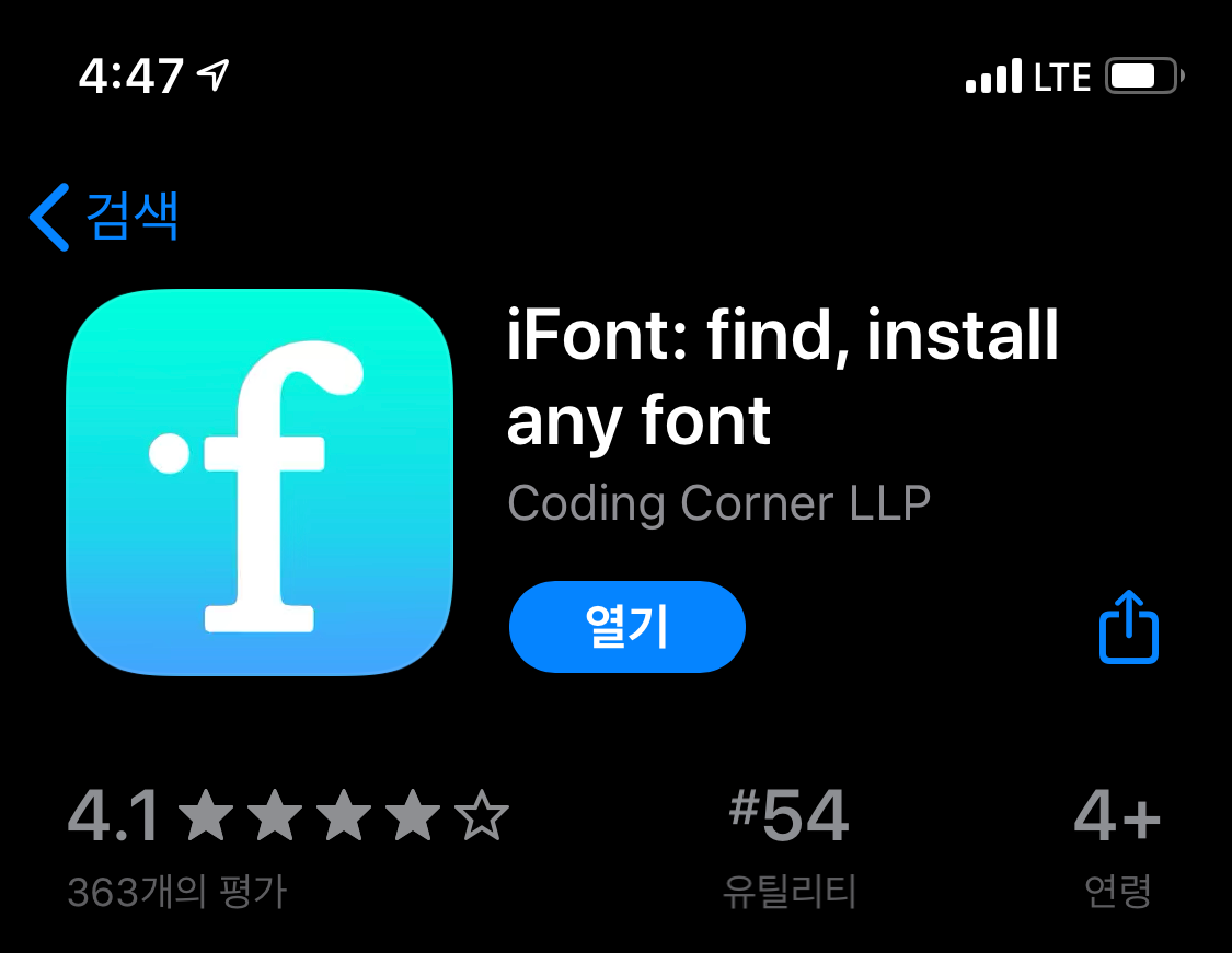 몇 개의 애플리케이션이 있는데 저는 iFont라는 어플을 이용하여서 폰트 변경을 해보았습니다. 우선 App Store에 들어가서 어플은 다운로드하여 봅시다. 다운을 받았으면 이제 내가 원하는 폰트를 찾아야 하는데요. 폰트의 경우 저작권 문제가 많으니 무료 폰트(저작권 문제가 없는)를 이용하시면 됩니다.
