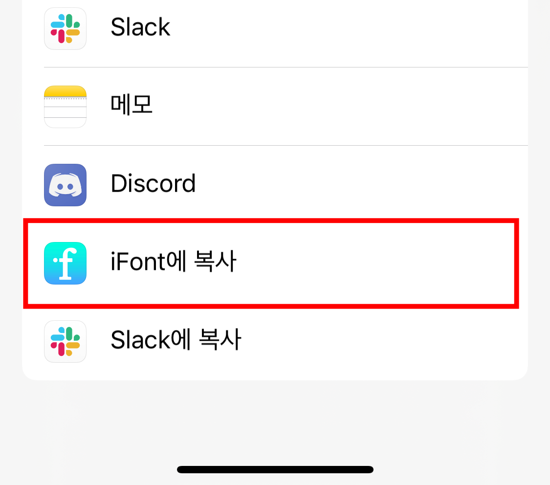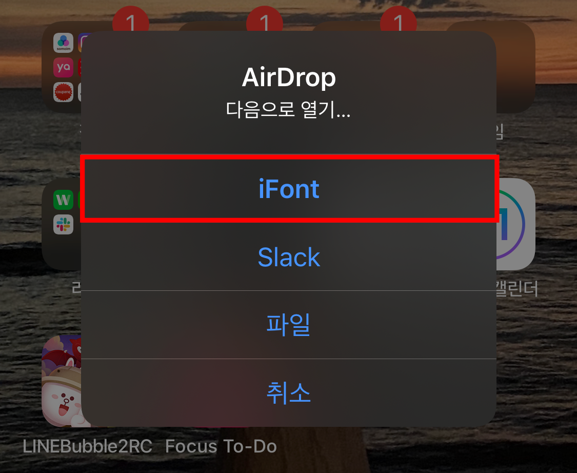 받은 폰트 파일을 사진에 처럼 iFont 어플로 내보내기를 합니다.