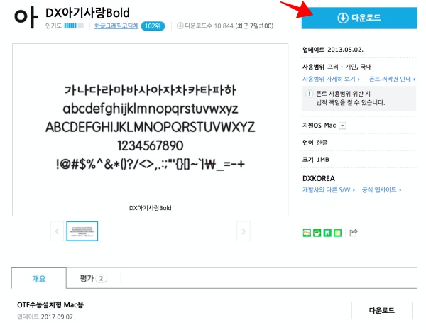 제가 테스트용으로 받은 곳은 네이버 Software 에서 받았습니다. 이곳에서 폰트를 치면 꽤나 많은 무료 폰트를 받을 수 있습니다. 다운로드 시 Mac OS로 받으면 됩니다.