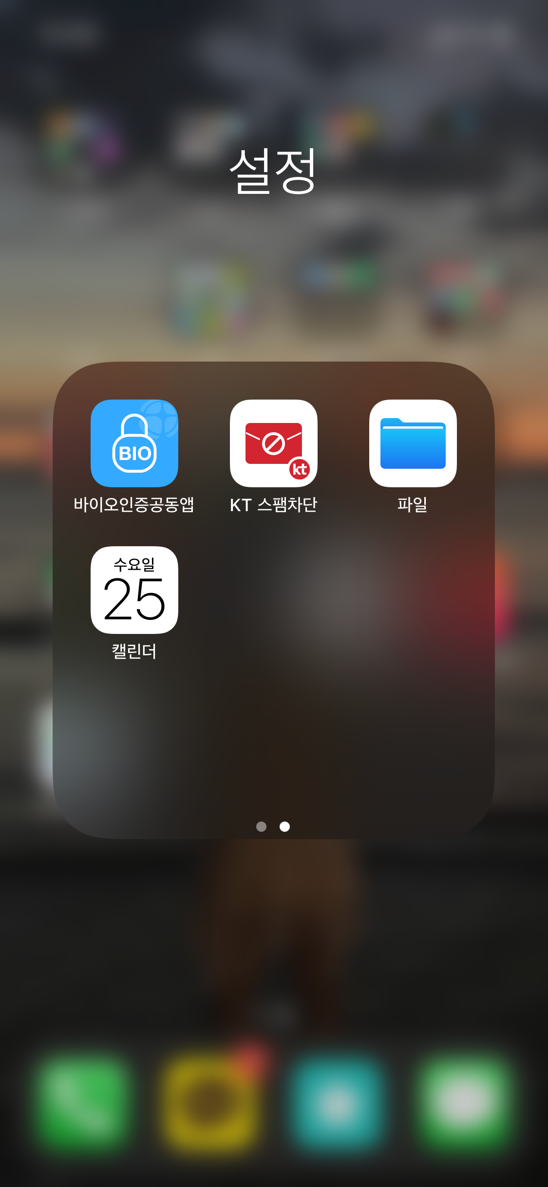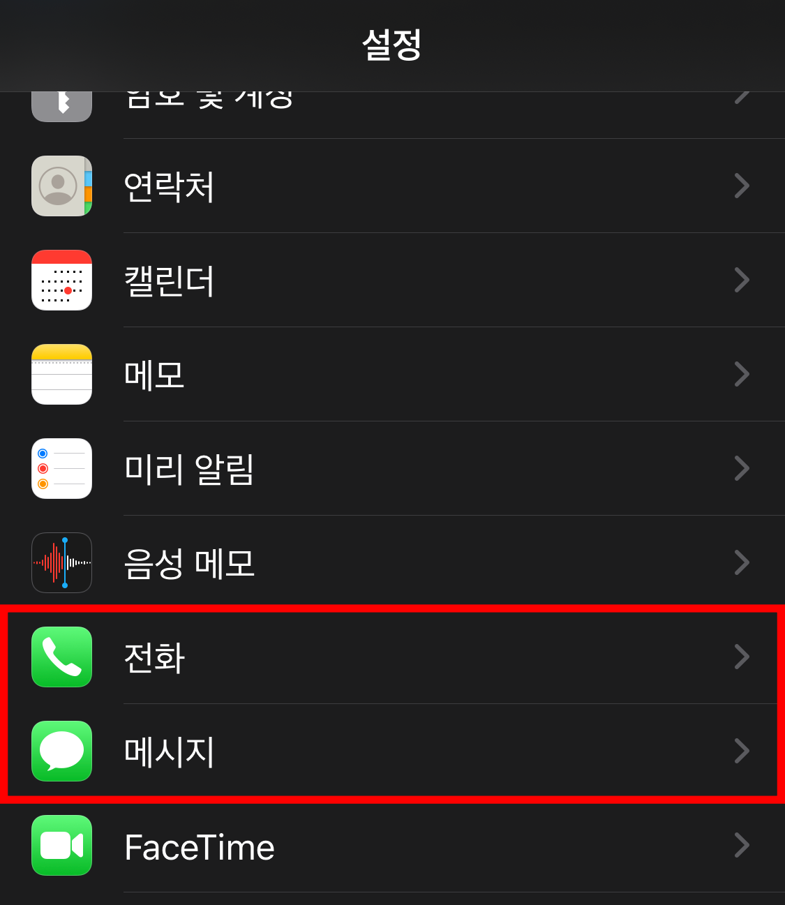 하단으로 내리게 되면 전화, 메시지애플리케이션 앱 아이콘을 볼 수 있습니다.