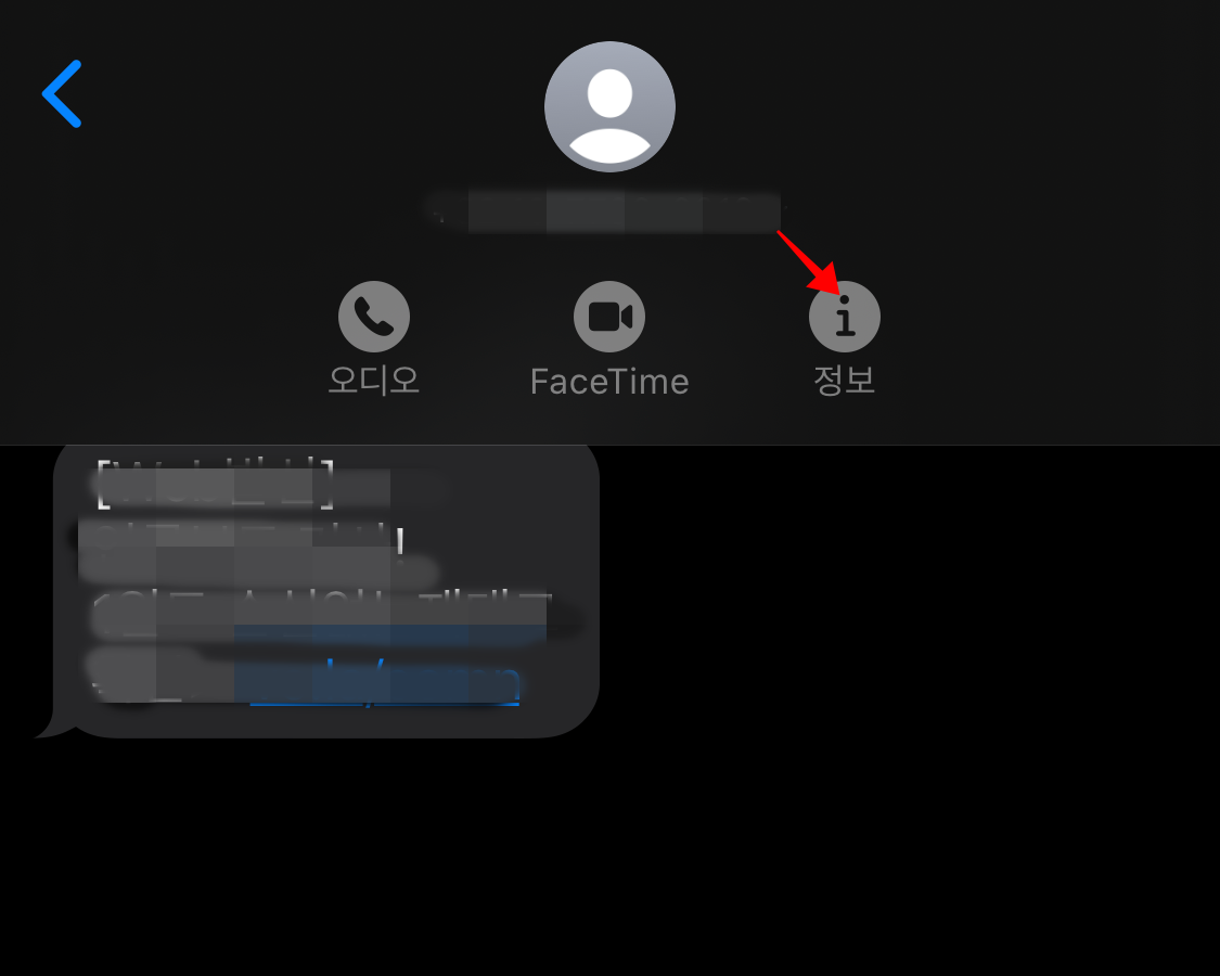 먼저 상단에 있는 프로필 화면을 눌러줍니다. 그러면 하단에 오디오, FaceTime, 정보 버튼이 생기게 됩니다.