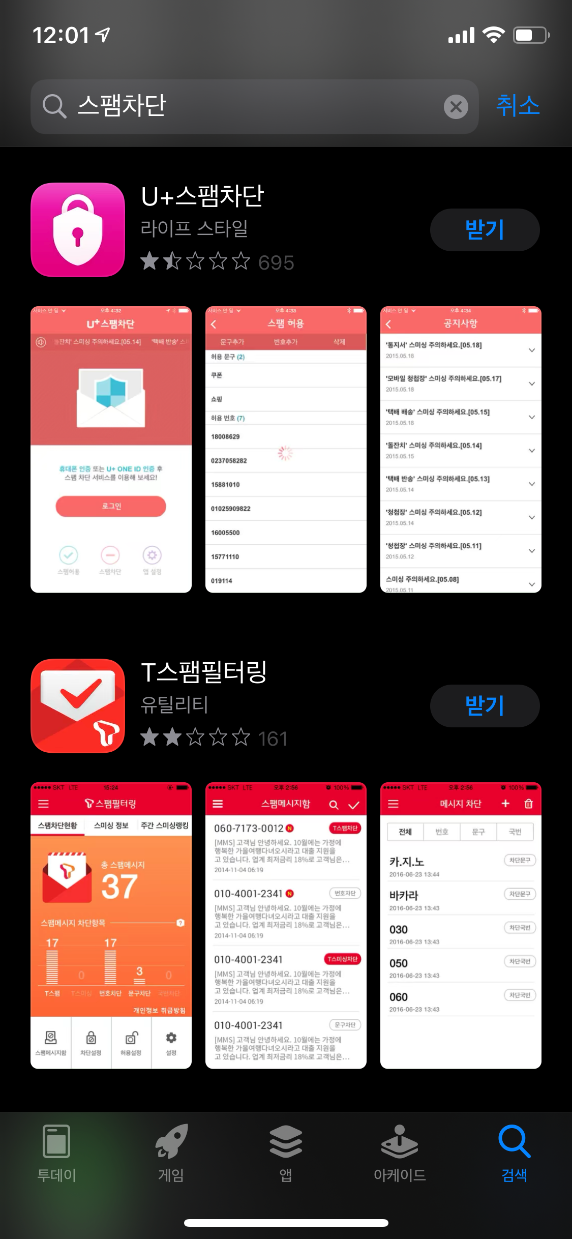그래서 방법을 찾다 보니 통신사에서 스팸차단을 위한 어플이 있더라고요.