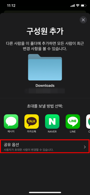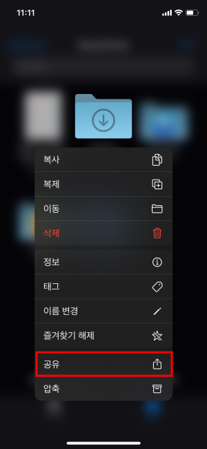 파일 앱에서 새롭게 추가된 공유 기능입니다. iCloud 안에 있는 폴더 중에서 자신이 원하는 폴더를 공유할 수 있는 기능이 추가되었습니다.