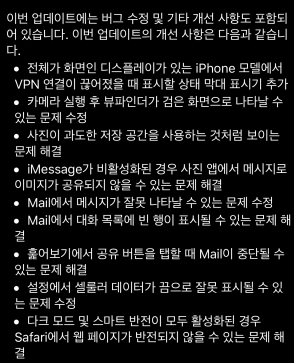 다양한 버그 수정 및 개선이 되었습니다. 예전엔 업데이트 시 이슈가 있는 버전도 있었는데요. 특별한 부분 없다고 하니 iOS 13.4 업데이트를 미루실 필요 없고 버그 픽스가 많이 된 만큼 하시는 게 좋겠습니다.